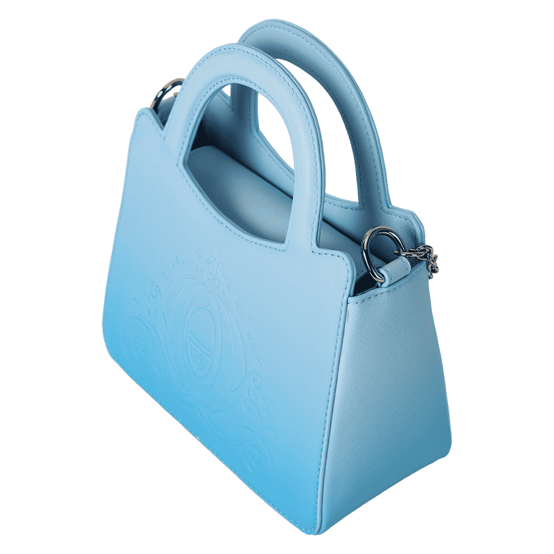Enfilez vos pantoufles de verre et amusez-vous ! Ce sac bandoulière bleu clair Cendrillon de Disney est prêt à faire une entrée remarquée pour les 75 ans de la marque. Le devant est orné d'un élégant imprimé en relief du carrosse de Cendrillon. Une chaîne argentée et une breloque en métal moulé représentant sa pantoufle de verre lui confèrent une touche de caractère. Retournez le sac et découvrez un imprimé en relief des personnages Disney adorés, Jaq et Gus. Emportez juste ce dont vous avez besoin pour une journée ou une soirée d'aventures magiques.